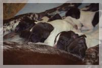 A kiskutyák 04.07 születek. Az alomba két gyönyörű egyszínű barna szuka született és 3 egyszínű barna kan és 4 spriccelt kan. Mind a 9 kiskutya gyönyörű és egészséges Sári tökéletes anya. Ebből a párosításból nincs eladó kiskutya. A következő párosításra is csak néhány előjegyzést van modunkba felvenni.